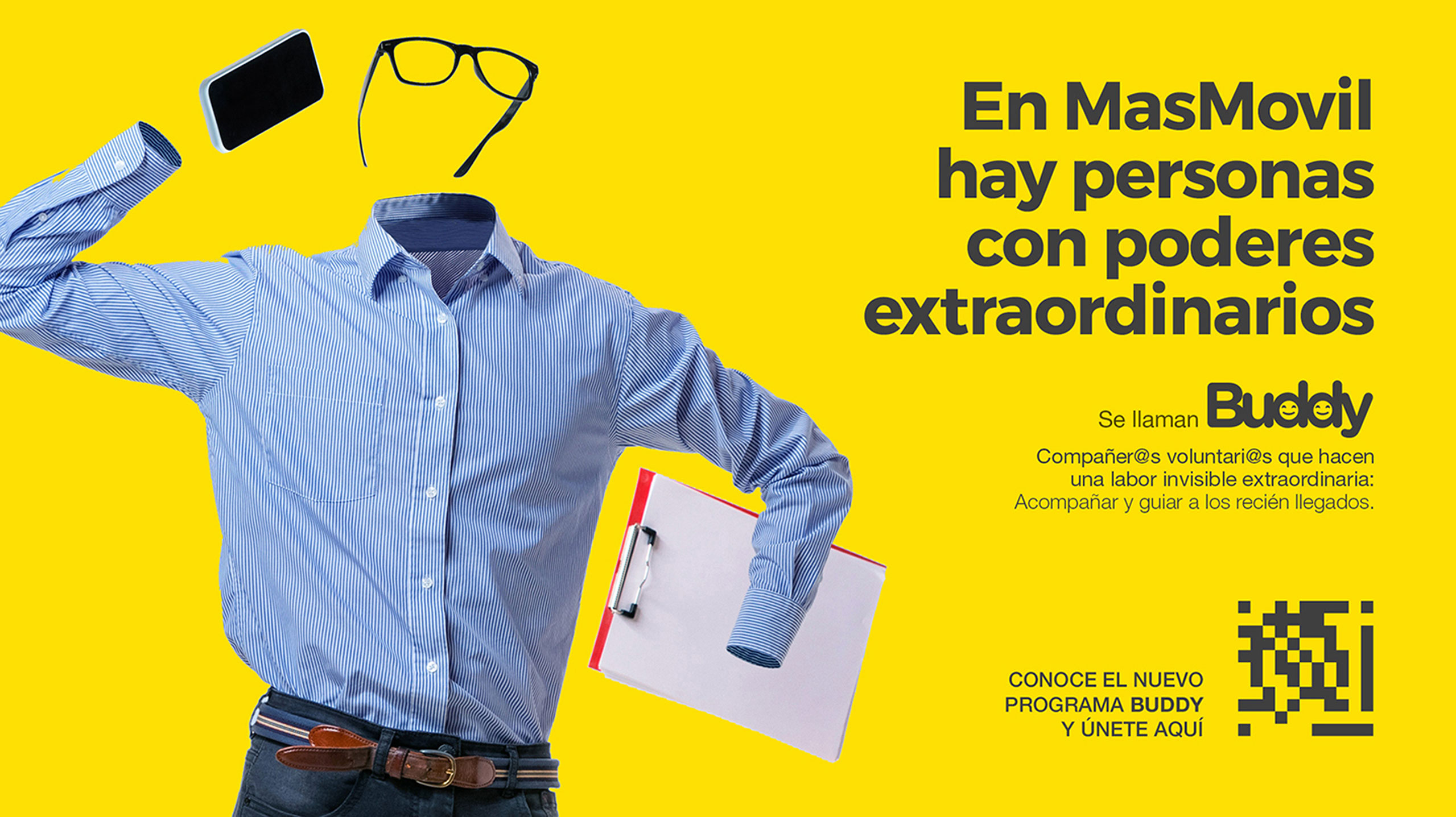 Los Buddies son empleados voluntarios del Grupo MASMOVIL que ayudan a los compañeros recién llegados en su proceso de incorporación, abanderando la cultura y los valores de la compañía. Con el poder extraordinario de la empatía y otras aptitudes invisibles, señalizan la pista de aterrizaje de los recién llegados.