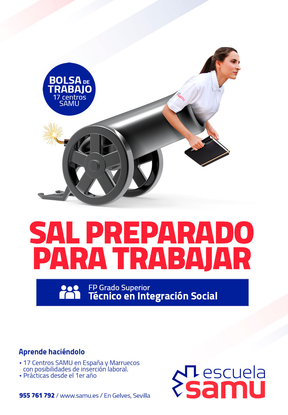 No hay mejor claim que el que posiciona a una marca en torno a su ventaja competitiva. Estudiar en el mayor complejo de Europa en simulación sociosanitaria y de emergencias mediante una formación eminentemente experiencial es la mejor forma de despegar hacia una salida profesional con garantías.